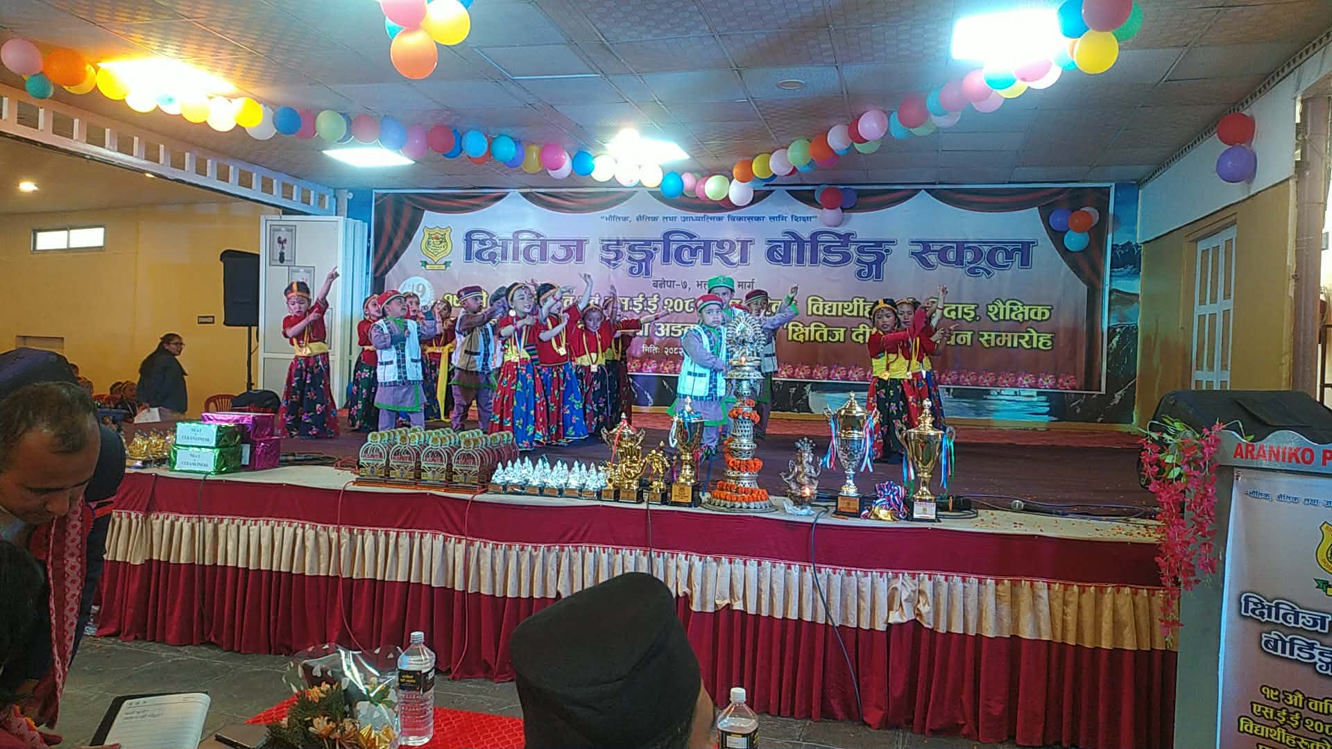 बनेपा— बनेपा नगरपालिका वडा नं. ७ स्थित क्षितिज इङ्लिस बोर्डिङ स्कुलको १९औँ वार्षिकोत्सव तथा एसईई २०८१ उत्तीर्ण विद्यार्थीहरूको विदाइ कार्यक्रम भव्य रूपमा सम्पन्न भएको छ।
